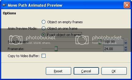 Do a test drive on your animation by clicking the "Anim Preview" button on the bottom of the Move Path Window above to see if it gives you the desired results. Here are the settings I used: