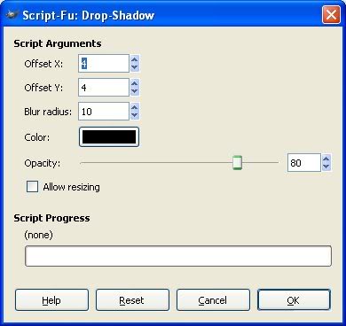 Step 8Now, let's add a drop shadow. With the text layer still active, go to Script-Fu menu > Shadow > Drop Shadow